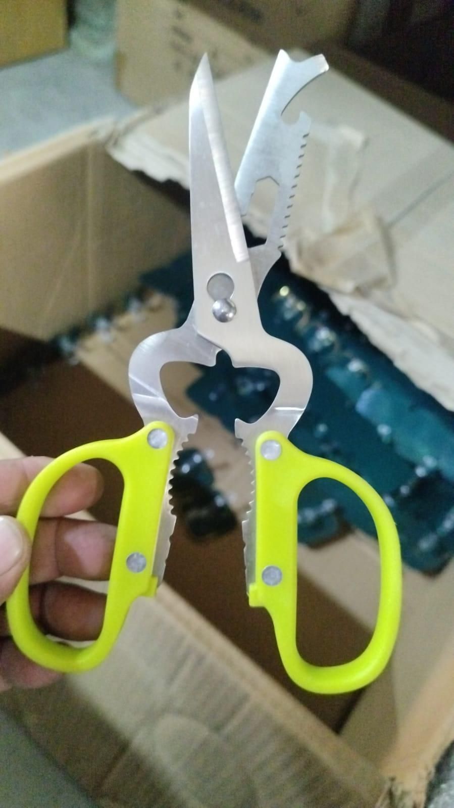 Product Name: 7 in 1 Multifunctional Kitchen Scissor Package Contains: It has 1 Scissor Material: Stainless Steel Color: Colour as per availability Prod Combo/Set Of: Pack of 1 Weight: 300